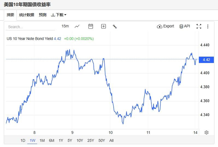 上周五,美债收益率大涨,基准的10年期美债收益率收报4.412%,对利率更加敏感的2年期美债收益率收报3.91%。