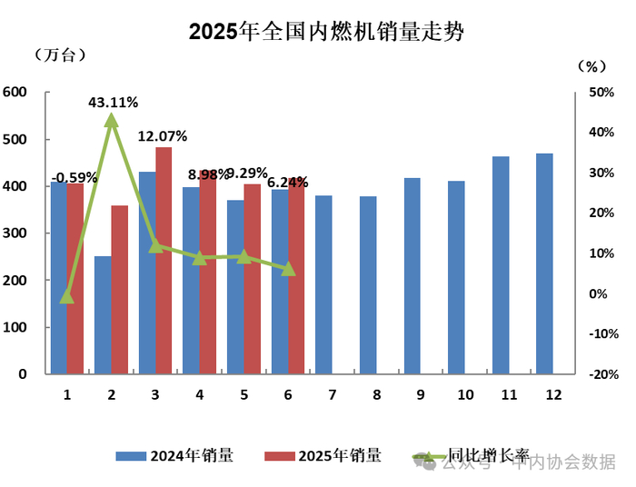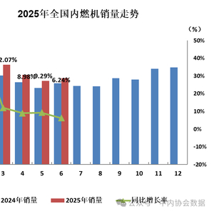 2025年6月内燃机行业整机销量环比增长,同比增长;上半年累计销量较上年同期增长超10%。