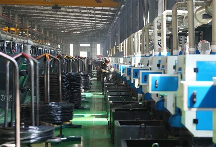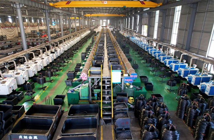 7月7日,位于邢台市任泽区龙泉剑集团-厚力五金产业园的共享车间内,全自动电窑正在对线材进行热处理。