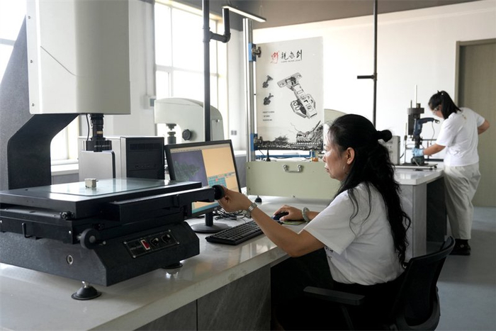 7月7日,位于邢台市任泽区龙泉剑集团-厚力五金产业园的共享车间内,工人在研发中心检测产品。