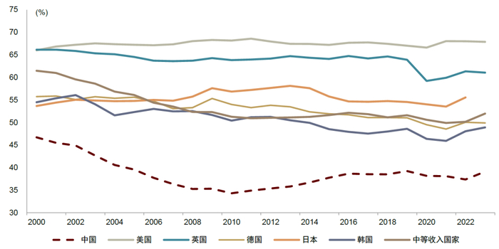 注:日本数据公布截至2022年,其他截至2023年资料来源:世界银行,Wind,中金公司研究部