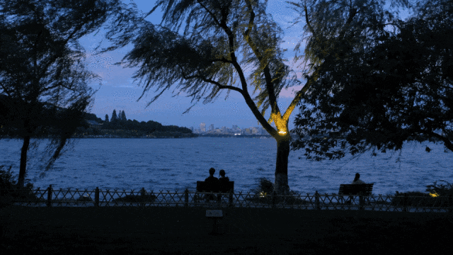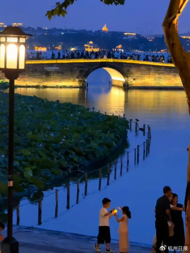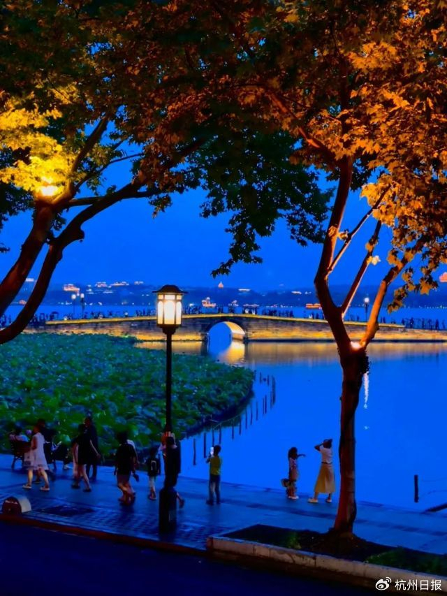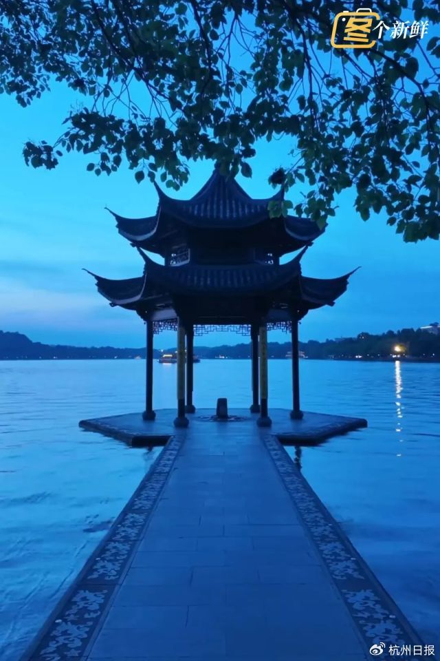 如果你错过了凌晨4点,不用担心,你还能见到傍晚7点的西湖“Blue Hour”。