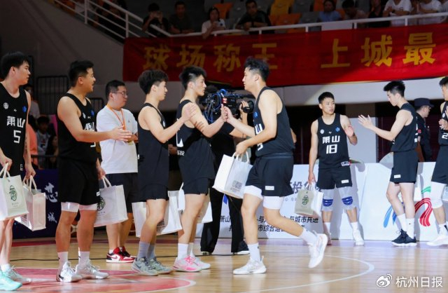 赛前双方也有互相交换礼物的环节。上城带来的是特产扇子,而萧山带来的是“萧山本味”土特产,就是这么接地气。