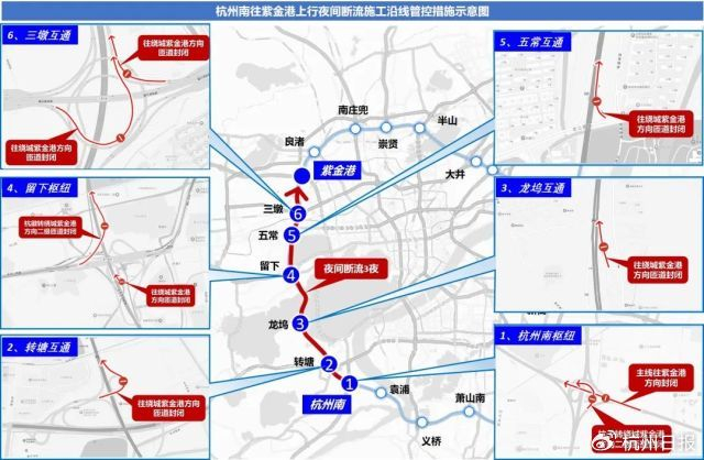 绕城西线南往北杭州南枢纽至紫金港枢纽路段封闭施工