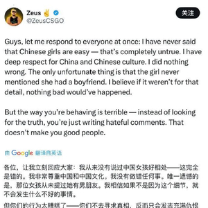 乌克兰电竞选手Zeus发文道歉,辟谣网传结婚传闻:希望能尽快结束此事
