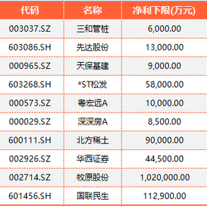 养殖行业龙头牧原股份和稀土永磁行业龙头北方稀土也进入了上周预告净利增速前十榜单,两家公司预计中报净利分别达到10.7亿元和9.6亿元。