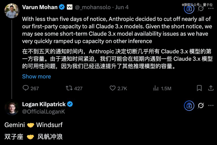 毕竟OpenAI这笔收购案闹得轰轰烈烈,Windsurf作为一个基础模型靠大厂的AI编程工具,还因此惨遭Claude断供,API直接不给用。