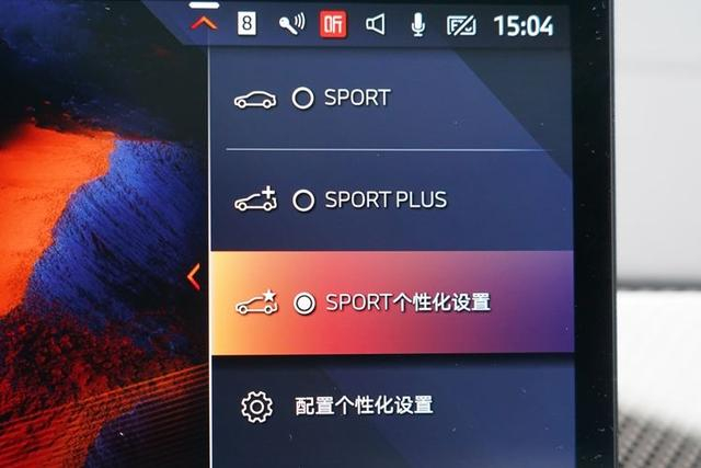 在运动模式里,还有运动增强版,以及个性化设置。前者更为“暴力”,后者可以根据自己的喜好,分别对动力、悬架、方向、制动等,进行单独设定。