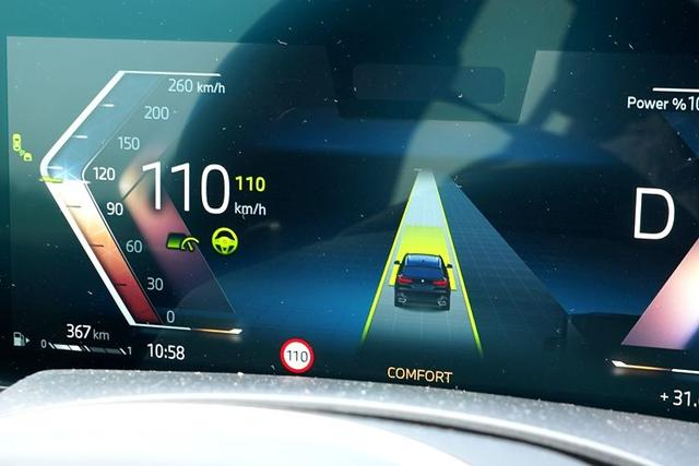 尽管智能程度还不错,但刚才说了,限于责任归属等法律问题,现阶段还不允许把车完全交给系统自动驾驶,所以,手离开方向盘不一会儿,仪表盘就会发出提示,要求驾驶者手握方向盘。