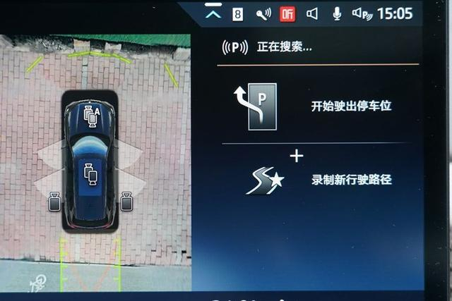 往前开挺智能,倒着开,也不逊色——该车具备自动泊车功能,系统识别到车位后,就能自动把车倒进去。