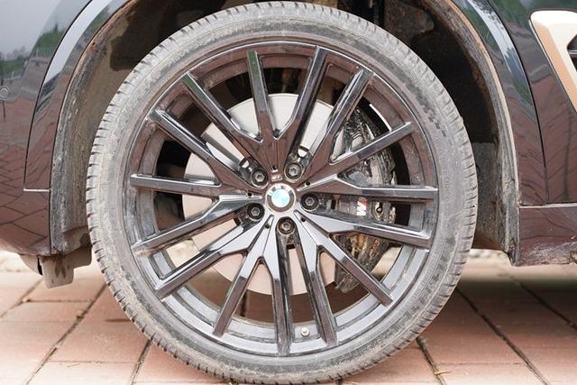 车轮22英寸,轮辐采用多幅造型,出于提高操控的需要,扁平比很小,且后胎的胎宽,比前胎多出40毫米,有利于保持车身稳定(前胎275/35R22,后胎315/30R22)。另外,前后轮都是通风盘,配备宝马的M高性能卡钳。