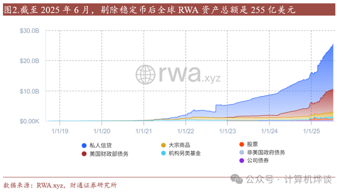 截至2025年6月,全球RWA资产(剔除稳定币)为255亿美元,根据BCG和ADDX联合预测,到2030年有望达到16万亿美元。