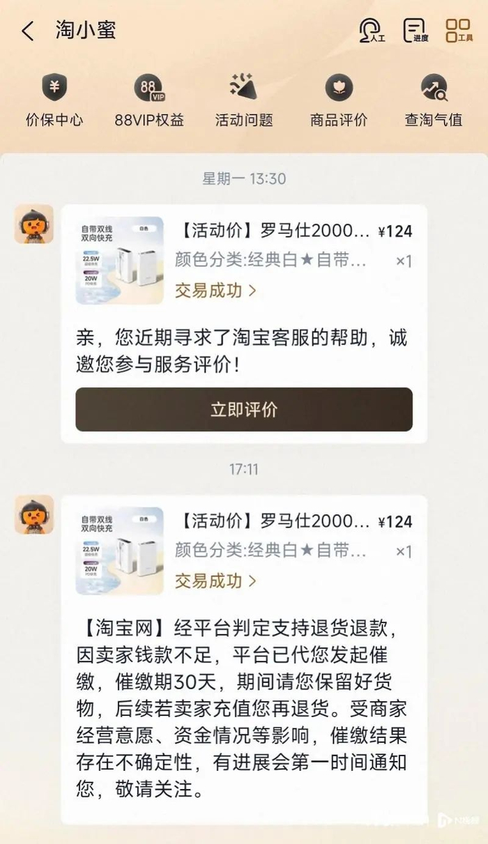 不过,消费者更关心退货退款的进度。记者从社交平台获悉,此前有网友陆续收到罗马仕退款,“我是官方旗舰店买的,2024年3月的订单。首先确认自己的型号和序列符合召回要求,直接找官方客服(店家客服没人,不回复),客服同意后申请仅退款,马上就到账了。”