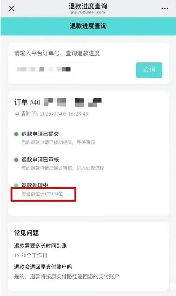 但近日,也有用户根据线上流程申请退款后发现,遭遇卖家保证金不足问题,退货停滞。甚至有网友在晒出的退款进度显示,排队位置在17万之外,预计需15-30个工作日才能到账,“目前退款申请已经通过审核,进入处理流程,当前查询退款进度显示位于177124位。”对于退款退货问题,罗马仕官方微博尚未给出明确回应。