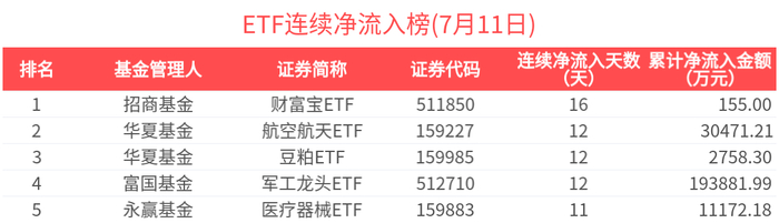 ETF资金榜 | 豆粕ETF(159985)资金加速流入,沪深300ETF(510300)“吸金”逾12亿元-20250711
