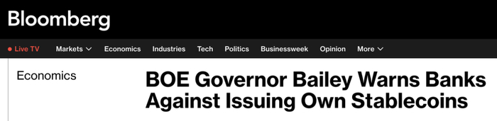 关于稳定币,英国央行行长发出警告