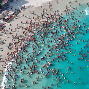 2025年7月13日,河南郑州,城市迎来持续性高温闷热天气,一家水上乐园迎来客流高峰。视觉中国 图