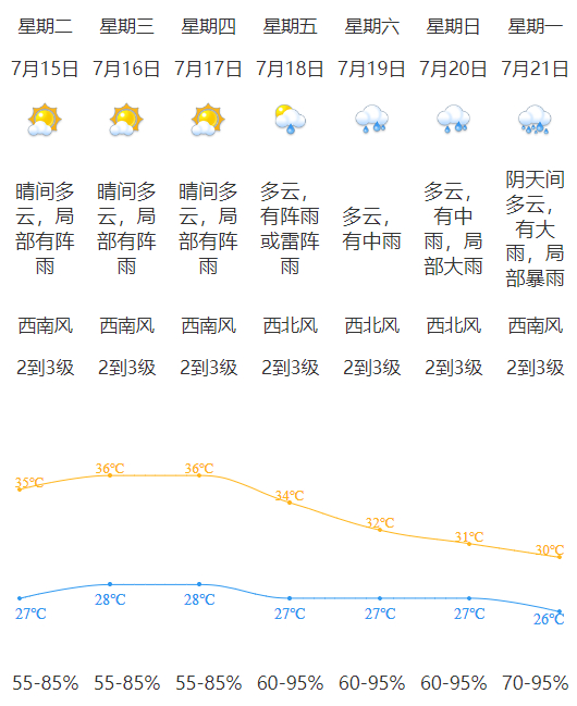 据市气象台预计,未来一周前中期高温炎热,间中有阵雨;后期受热带系统影响,降雨趋于频繁,高温天气有所缓解。