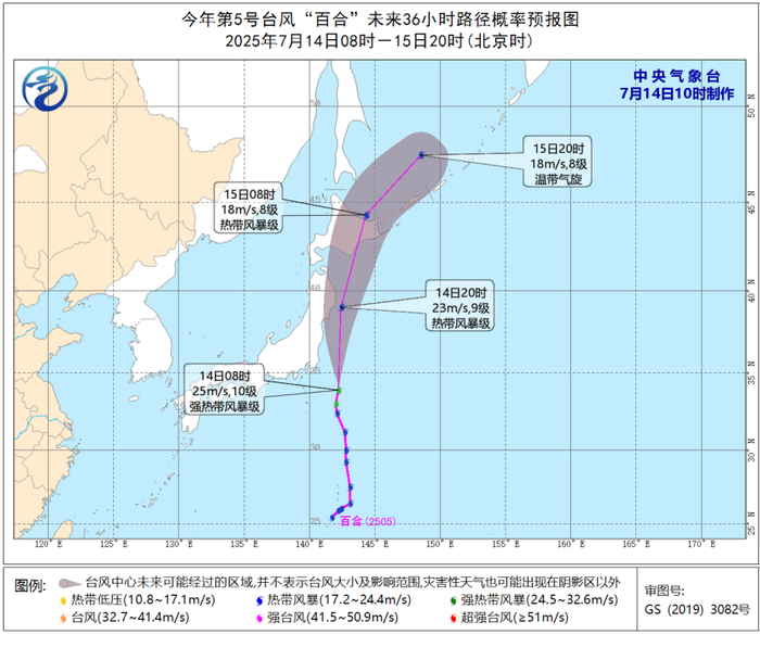 中央气象台预计,“百合”将以每小时45-50公里的速度向偏北方向移动,逐渐向日本东部沿海靠近。未来“百合”对我国无影响。