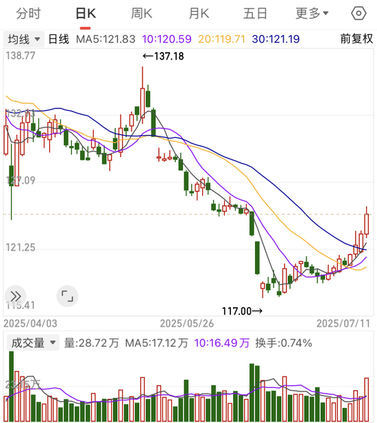截至7月11日,五粮液公司市值为4825亿元,较2025年初的5334亿元缩水约500亿元,跌幅达10.56%。值得注意的是,在4月26日披露年报及分红方案后,股价非但未获提振,反而在6月19日下探至117元阶段低点,期间最大跌幅达10.58%。虽然此后有所回升,但方案公布至今仍录得4.49%的累计跌幅,这一走势与市场此前对高分红利好的乐观预期形成反差。