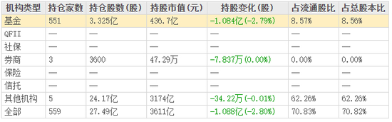 此外,机构持仓数据显示,五粮液的市场关注度在2025年一季度出现降温。截至一季度末,基金持仓数量已由2024年末的1419家锐减至551家,降幅达61.2%;持股总量从4.41亿股缩减至3.32亿股,减少24.7%;持仓市值由617.36亿元降至436.68亿元,缩水29.3%;占流通股比例也从11.36%下滑至8.57%。这一系列数据表明,部分机构投资者正在加速减持五粮液股票,或反映出市场对其投资价值的重新评估。