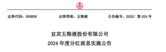 7月11日晚间,五粮液(000858.SZ)发布2024年度分红派息实施公告。根据公告,本次分红的股权登记日为2025年7月17日,即在当日收盘前持有公司股票的股东均可享有本次分红权益。现金红利将于7月18日通过中国结算深圳分公司及托管券商直接划入股东资金账户。