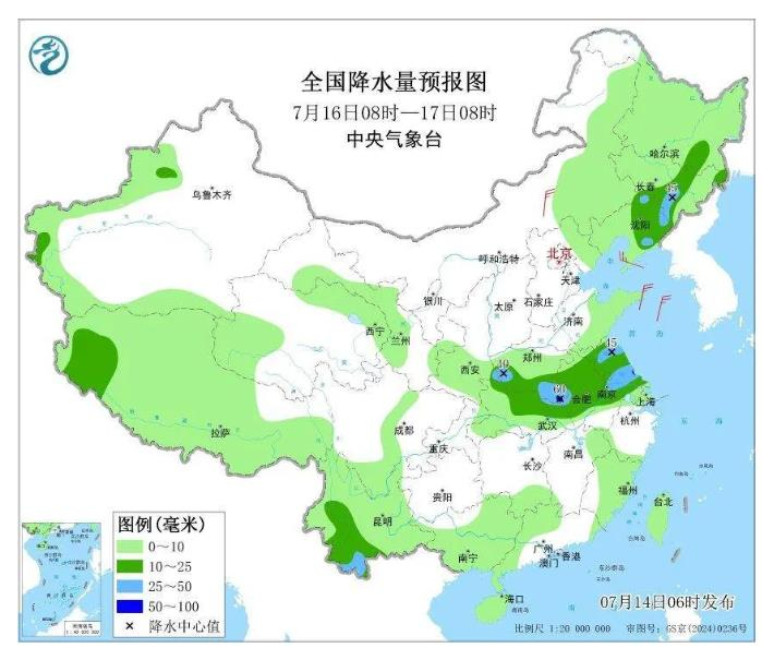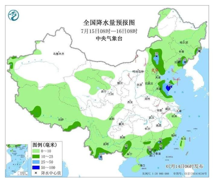 全国72小时降水量预报图。