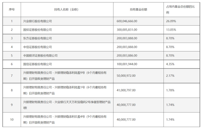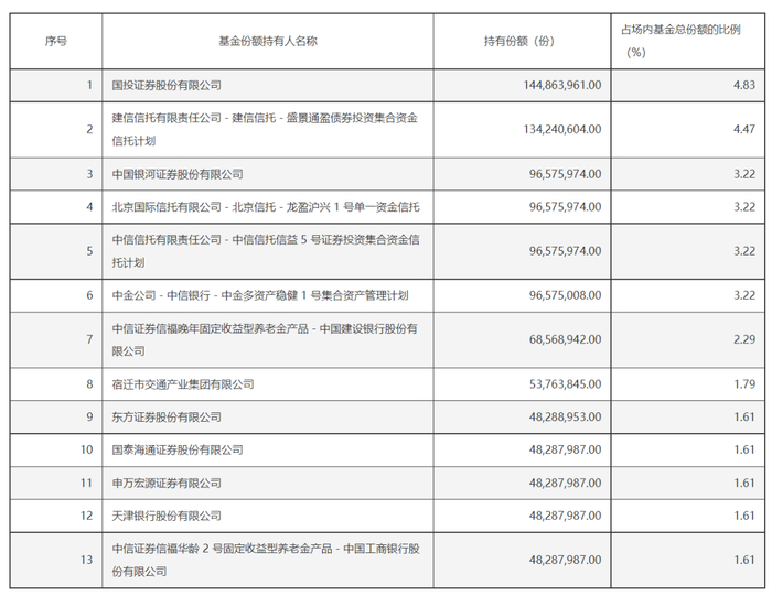 下图是富国科创债ETF前十名基金份额持有人: