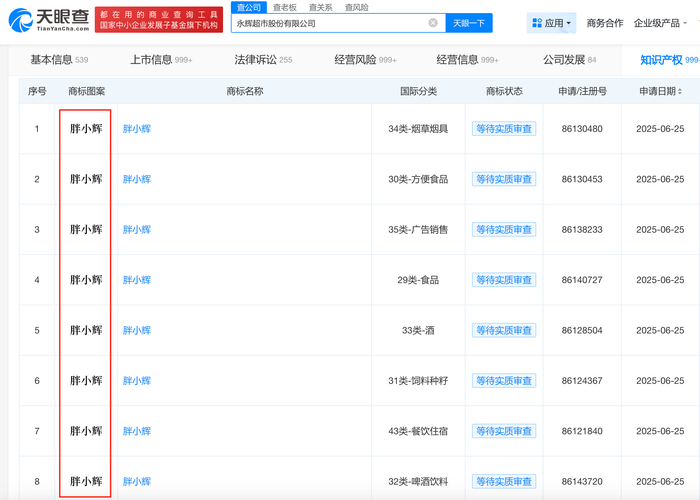 7月14日,据天眼查数据显示,永辉超市近期向国家知识产权局提交多枚 “胖小辉” 商标注册申请,国际分类涉及啤酒饮料、广告销售、食品等领域,当前商标状态均为等待实质审查。这一动作正值永辉超市加速推进 “胖东来模式” 调改、深化供应链改革的关键阶段。