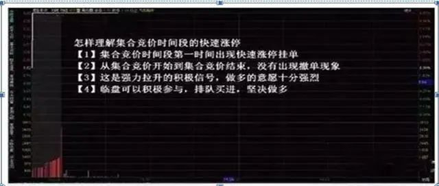 如果临近竞价结束资金抢筹,成交量放大到首板爆量半数以上最佳,还需要看市场强弱。逆情绪抢筹拉升最佳,从分歧到一致,当天封板问题不大,从一致到一致,容易炸板。