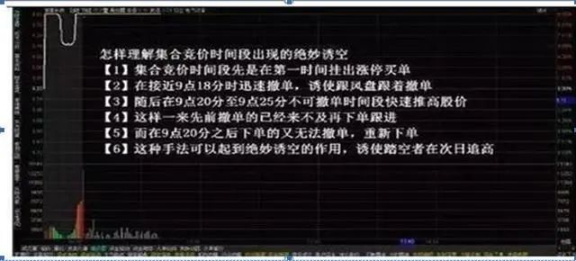 1) 9:15—-9:20这五分钟可以随意的委托买卖和撤销股票的单子,因此在这个时间段你看到匹配成交量可能是虚假的。很多主力会在这个时间段大单买进股票制造股票强势假象诱导投资者买入股票,然后主力在9时:19分:30秒左右撤单,当你买进时,你不撤单,他可撤出,然后他卖给你,因此大家在这个时间段买进股票要多关注最后几秒钟主力撤单情况。