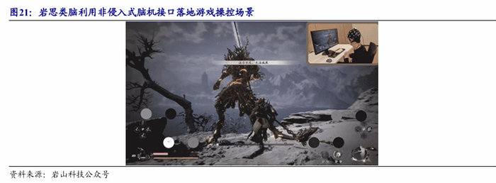 岩思类脑利用非侵入式脑机接口落地游戏操控场景。在应用场景上,岩思类脑研究院已运用非侵入式脑机接口技术操作游戏并在黑神话悟空上实现了连续、精准的游戏操控。岩思类脑首席科学家李孟博士提到:这套脑机接口操控系统的丝滑程度反映出岩思类脑研究院领先的神经解码技术实力,无需鼠标、键盘、手柄等外设,即可精准解码脑电波,以60ms的高刷新率实时、连续输出控制指令,以非侵入的方式实现了超越侵入式脑机接口的人机交互性能。