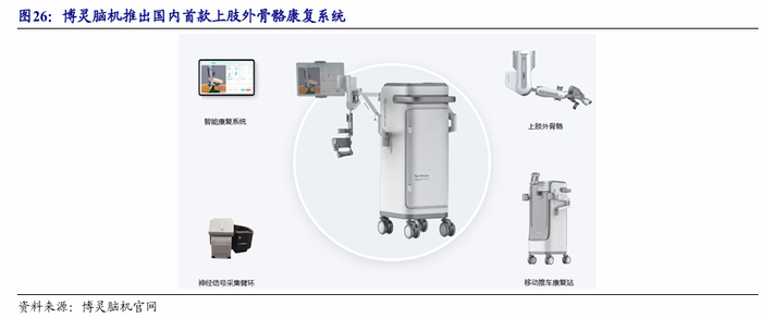 博灵脑机推出国内首款上肢外骨骼康复系统。博灵脑机采用脑机接口技术开发的B端产品(上肢外骨骼主动康复训练系统),能够精准识别偏瘫患者的主动运动意图,使其患侧肢体的被动训练与主动运动意图相匹配,能有效提升康复训练效果。同时,该系统还为康复科医生提供了强大的患者康复数据管理和个性化康复方案定制等功能。
