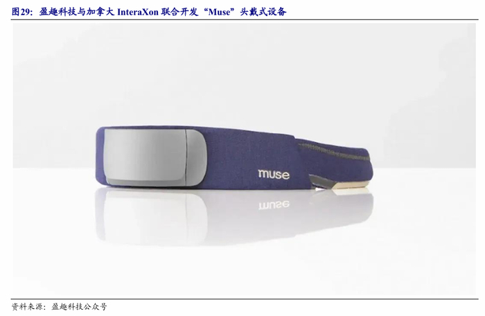 盈趣科技与加拿大InteraXon联合开发“Muse”头戴式设备。盈趣科技参股投资的加拿大公司InteraXon,早在十多年前开始了脑机接口的研究,并与盈趣科技联合开发了“Muse”头戴式设备,可以监测大脑活动并提供反馈,以帮助人们提高专注力和放松力。这款产品也在欧美市场得到了良好的反响,截至2024年一季度,销售数十万台。