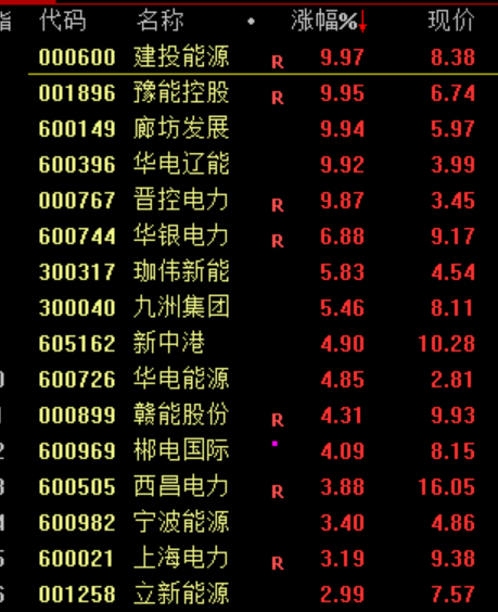 电力、电网概念股反复活跃,建投能源、豫能控股等涨停。