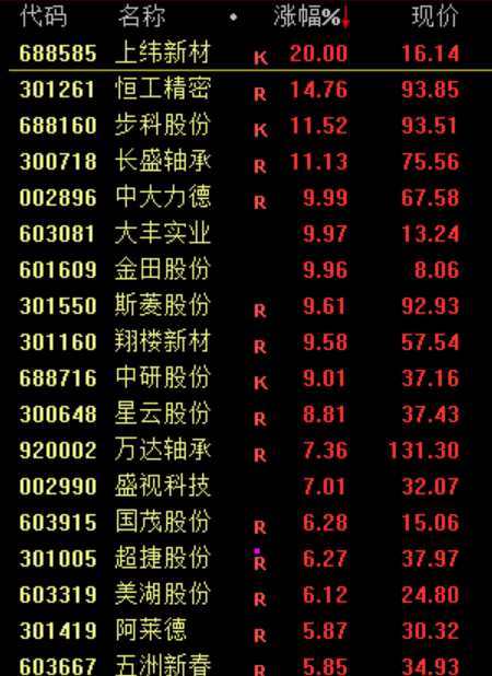 机器人概念板块全天强势,上纬新材、中大力德等多股涨停。
