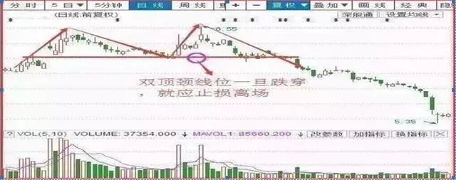 如上图,双顶形成后,跌穿颈线就要果断出局,以免后期更加被动。