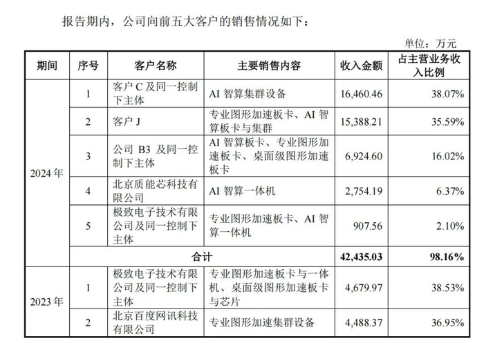 2022-2024年,公司前五大客户营业收入占比分别为89.86%、97.45%、98.16%,其中2024年第一大客户收入占比达38.07%,前两大客户合计占比73.66%。这种过度依赖少数客户的格局,使得公司经营业绩极易受单一客户订单波动影响。