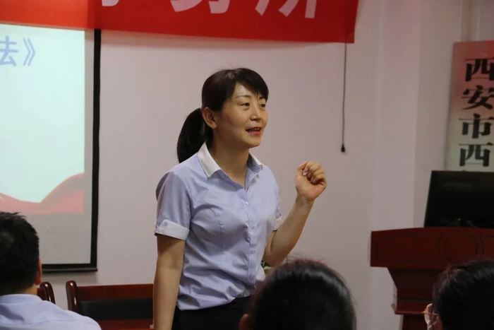 刚入职时,她跟着经验丰富的张老师、辛老师听课,笔记本上记满了“如何用身边事讲清大道理”的技巧;用社区里的养老变化讲“社会保障”;用校门口的交通整治讲“法治建设”;用同学们的志愿服务讲“奉献精神”。前辈常说:“思政课要接‘地气’,才能有‘生气’。”这句话成了她二十一年教学的指南针。在条件有限的年代,她骑着自行车跑遍未央区的街道社区,收集鲜活案例;为了讲好“国际时事”,她带着学生采广泛收集时政素材,把故事搬进课堂。那些年,办公室的灯常常亮到深夜,教案改了又改,只为让抽象的理论变成学生能触摸到的温暖。