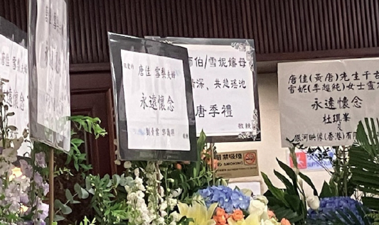 唐佳与雪妮葬礼今天举行,明早出殡,杜琪峰、刘青云、吴卓羲、胡杏儿等众星送花篮悼念