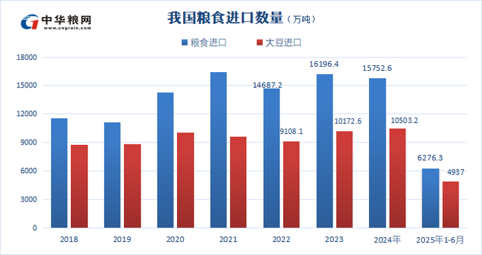 2025年上半年我国粮食进口量同比减少25.4%