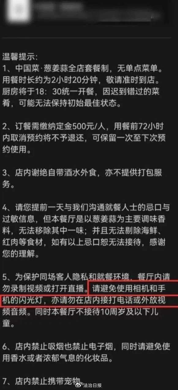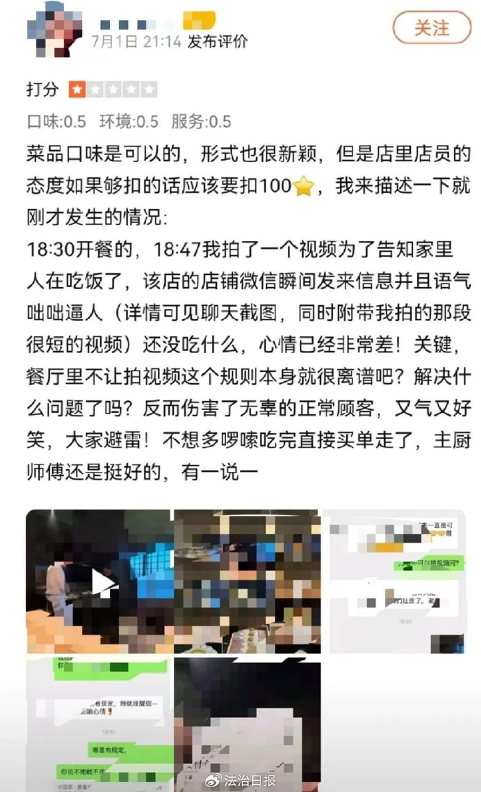 花3621元在高档餐厅吃饭却被禁止拍视频,合理吗?律师解读→