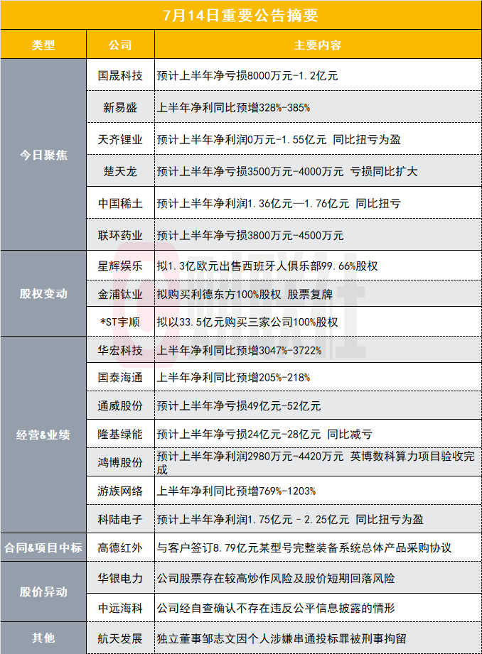 净亏损最高1.2亿元!四连板光伏概念股发布上半年业绩预告|盘后公告集锦