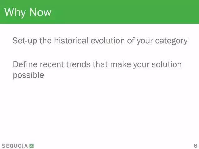 最好的公司几乎总是很清楚为什么当下其最好的时机。大自然的发展容不下真空期——为什么你的解决方案之前没有出现过呢?