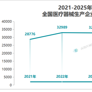 从2021—2025 年全国医疗器械生产企业数量的整体走势来看,行业规模呈现出持续扩大的态势。2021年全国医疗器械生产企业数量为28776家,到2025年已增长至35359家。虽然近4年增长有所放缓,进入短暂的调整期,但整体向上的趋势明确。