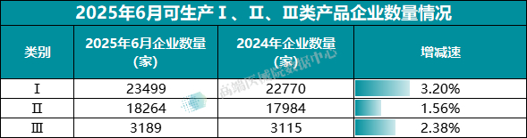 其中,可生产Ⅰ类产品的企业23499家,较2024年底上升3.20%。可生产Ⅱ类产品的企业18264家,可生产Ⅲ类产品的企业3189家,分别增长1.56%、2.38%。