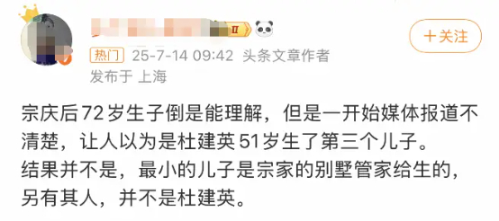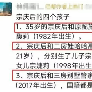 更令人瞠目的是,根据网络爆料及诉讼信息,宗继昌与宗婕莉的生母为杜建英——一位比宗庆后小21岁的娃哈哈前高管,幼子宗继盛则被指由宗庆后与一位“别墅管家”所生,至今外界连其名字都不得而知。