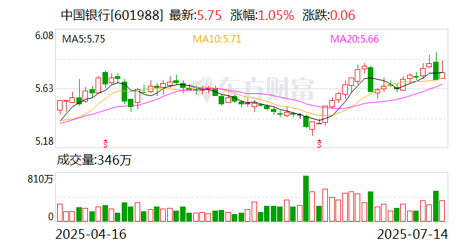 中国银行7月14日大宗交易平台出现一笔成交,成交量93.00万股,成交金额534.75万元,大宗交易成交价为5.75元。该笔交易的买方营业部为国信证券股份有限公司北京分公司,卖方营业部为华泰证券股份有限公司北京苏州街证券营业部。