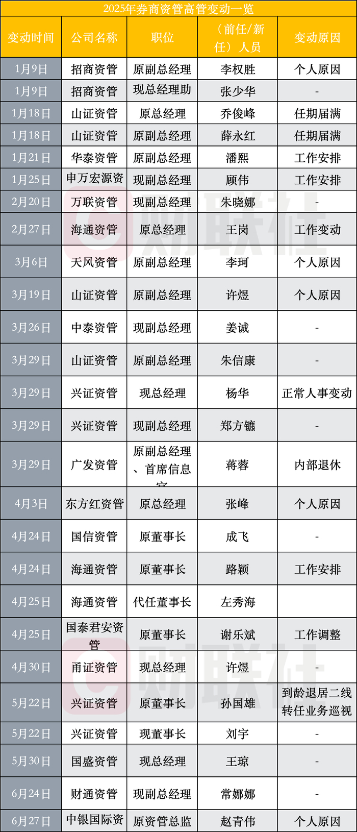 2025年以来,券商资管行业便掀起密集的人事调整浪潮。据不完全统计,今年已有至少15家券商资管子公司发生高层人事变动,覆盖招商资管、兴证资管等头部机构,以及山证资管、万联资管等区域型企业,涉及董事长、总经理和副总经理等核心管理岗位。