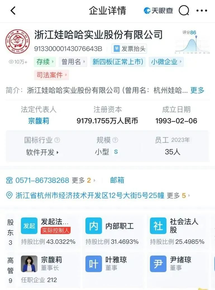 2024年宗庆后辞世后,宗馥莉迅速被推上了娃哈哈掌门人的位置,接管了多家核心子公司。